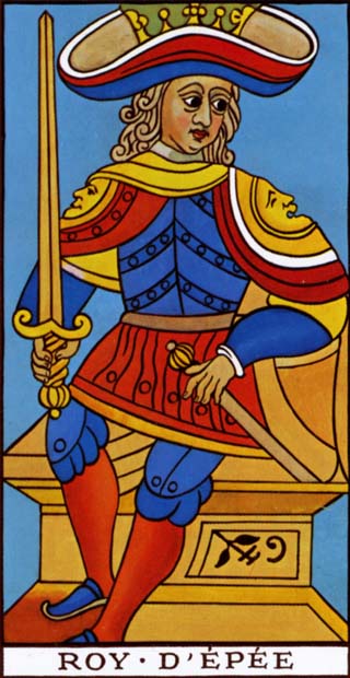 He sits in judgment, holding the unsheathed sign of his suit. Divinatory Meanings: Whatsoever arises out of the idea of judgment and all its connexions — power, command, authority, militant intelligence, law, offices of the crown, and so forth. Reversed: Cruelty, perversity, barbarity, perfidy, evil intention.