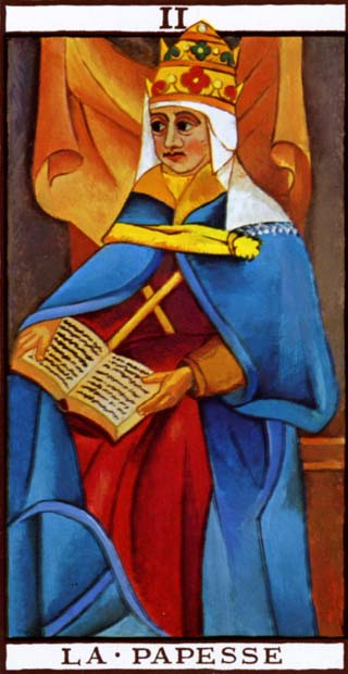 Secrets, mystery, the future as yet unrevealed; the woman who interests you, or perhaps your own feminine side; silence, tenacity; wisdom, science. Reversed: Passion, moral or physical ardour, conceit, surface knowledge.